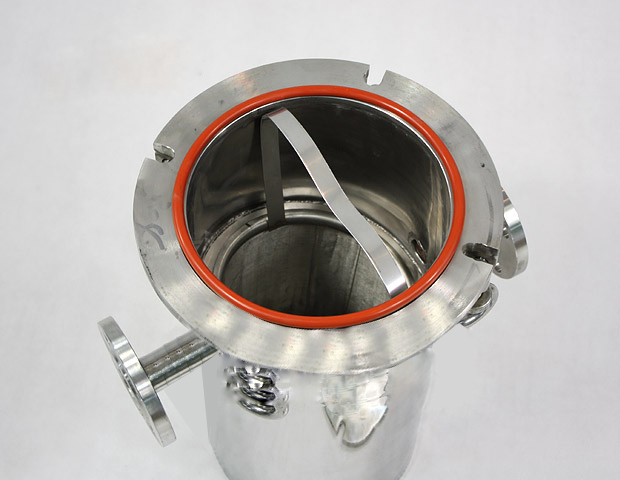 產品簡述:籃式過濾器主要由接管、主管、濾藍、法蘭、法蘭蓋及緊固件等組成。當液體通過主管進入濾藍后,固體雜質顆粒被阻擋在濾藍內,而潔凈的流體通過濾籃、由過濾器出口排出。當需要清洗時,旋開主管底部螺塞,排凈流體,拆卸法蘭蓋,清洗后重新裝入即可。因此,使用維護極為方便。
